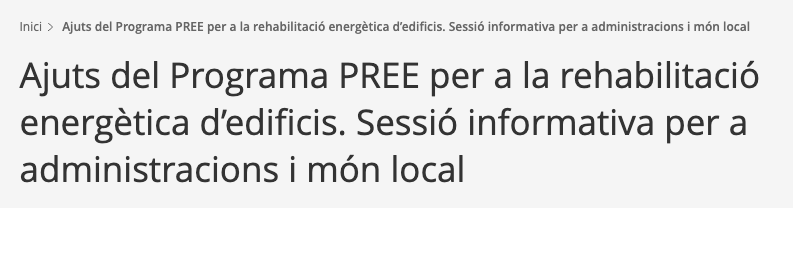 Ajuts del Programa PREE per a la rehabilitació energètica d’edificis.Data: 14 i 16 de desembre, 12:oo hores