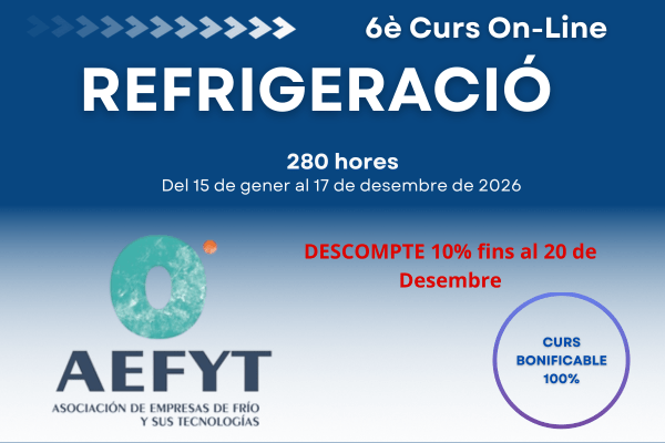 La nova edició del Curs de REFRIGERACIÓ de AEFYT. El curs està dirigit a enginyers projectistes d’instal·lacions frigorífiques, caps d’enginyeria,