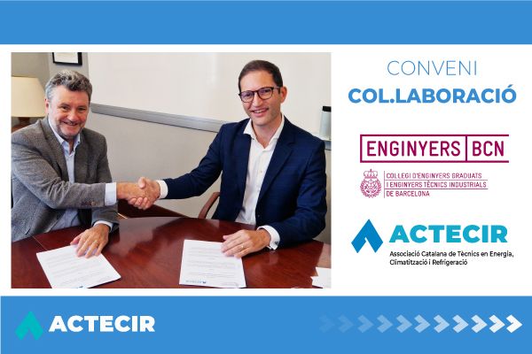 Col.legi d’Enginyers Graduats e Enginyers Tècnics Industrials de Barcelona ACTECIR. Associació Catalana de Tècnics en Energia, Climatització i Refrigeració, actualizaron su convenio de colaboración que mejorará la relación entre ambas asociaciones, ayudando a hacer aún más visible su trabajo y sus objetivos de cara al futuro. Una colaboración para fomentar y desarrollar profesionalmente las empresas a las que representan.