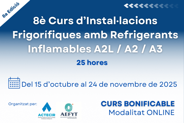 9è Curs Instal·lacions Frigorífiques de CO2 organitzat per AEFYT amb la colaboració d'ACTECIR Mès info ℹ️ https://www.actecir.cat/curs-dinstallacions-frigorifiques-de-co2/