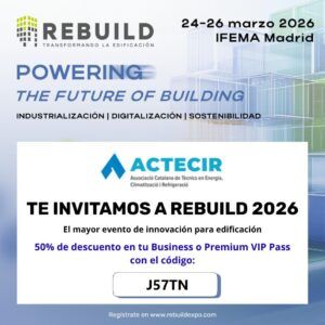 Gràcies a l’acord de col·laboració entre ACTECIR i REBUILD 2026, ens complau oferir-te una invitació amb 50% de descompte perquè no et perdis la gran cita d’industrialització, sostenibilitat i digitalització per a l’edificació.